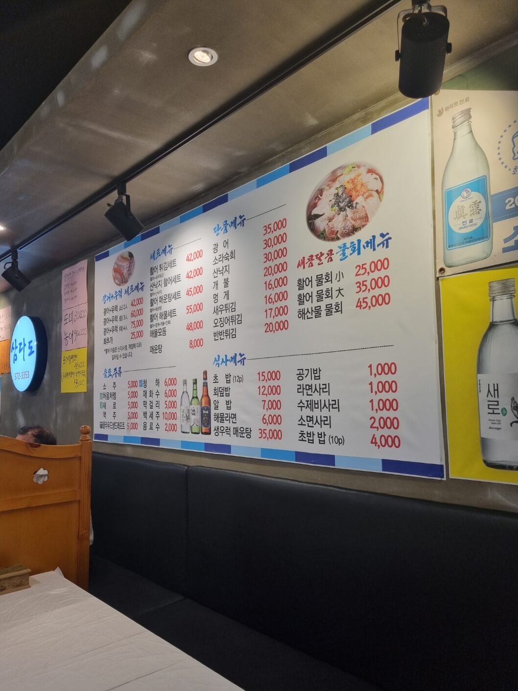 우리는 광어 우럭세트 2인 (42,000)과 소주 2병(10,000), 청하 1병 (6,000),
