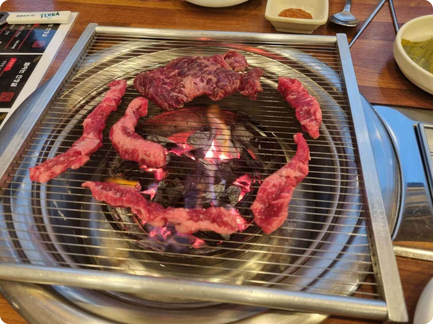 완전 저급 고기 맛도 아닌데 숙성 소고기 숯불에